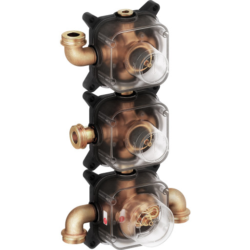- Installation: Start med at sikre, at vandtilførslen er afbrudt. Monter termostatbatteriet på væggen ved hjælp af de medfølgende beslag. Tilslut både varmt og koldt vand til de korrekte indgange.